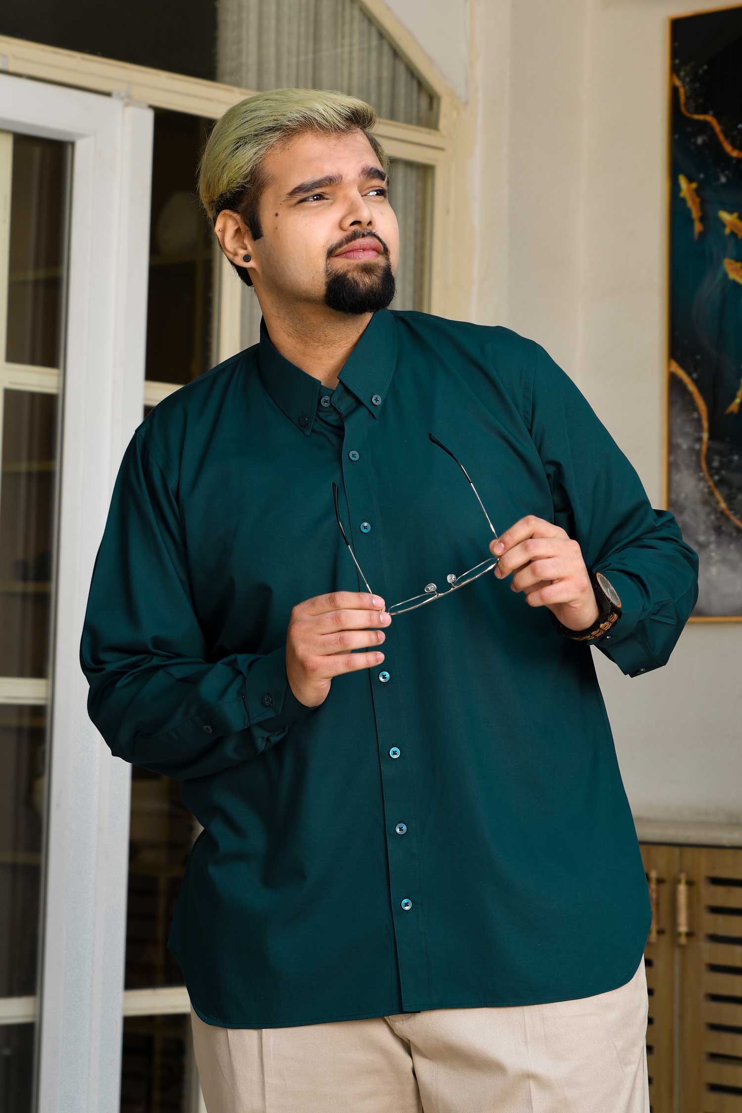 Dark Teal - Teal Button Down Collar Hypoallergic Bamboo Blend Shirt